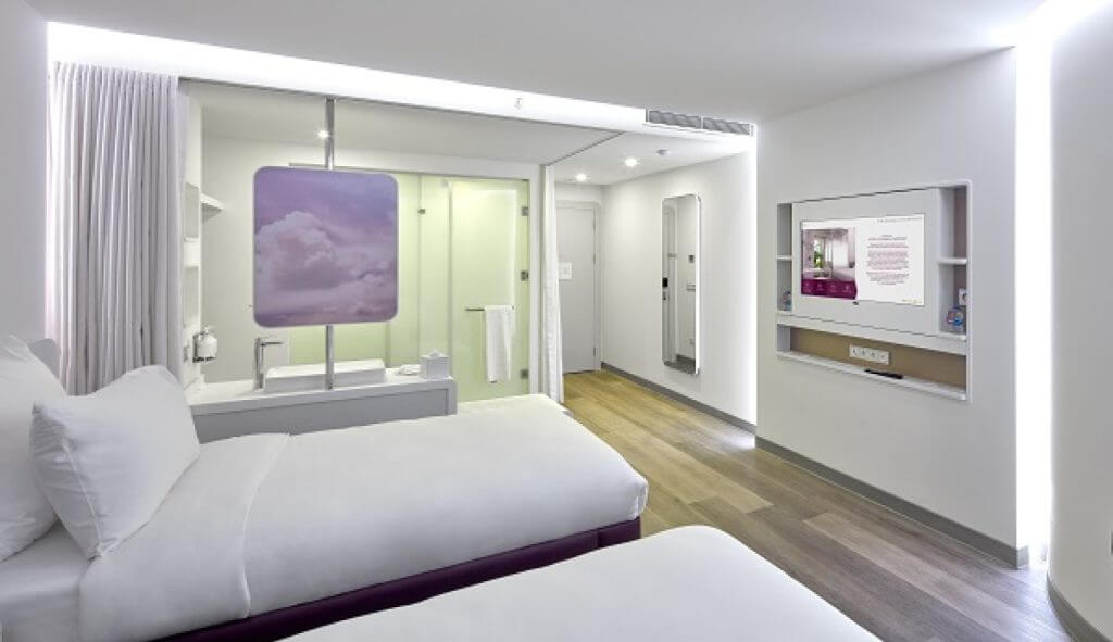 The first thing you can actually consider when choosing where to get to a bed at new Istanbul Airport is, undoubtedly, the airport’s YOTEL. It’s a flagman hotel network which occupies the airport and has no competitors inside it. There are 2 modern-decorated locations in the airport where you can apply for rooms in YOTEL hotels. The 1st direction is YOTELAIR which meets a tourist right after passport control in a duty-free zone of the airport. It proposes luxurious rooms with a signature feature of YOTEL – its smart beds which offer the highest restful time (these beds easily transform into the sofa and back again and lying on them is a true delight). So, YOTELAIR is the only Istanbul Airport hotel in the terminal area.